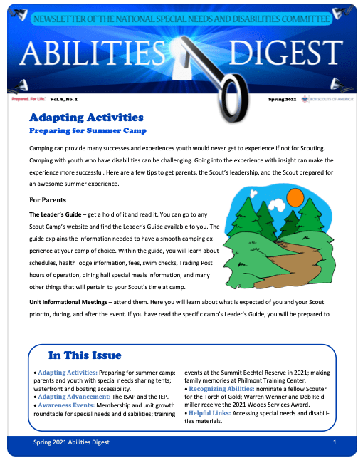 - Awareness Events: Membership and unit growth roundtable for special needs and disabilities; training events at the Summit Bechtel Reserve in 2021; making family memories at Philmont Training Center.
