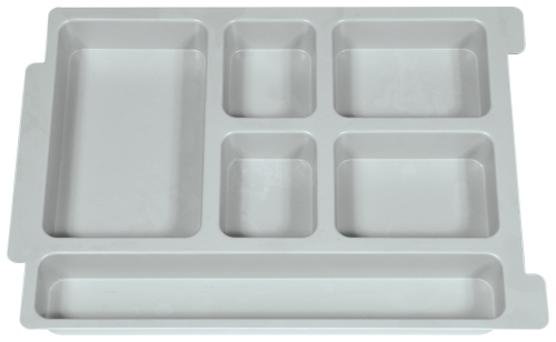 A different type of accommodation is to provide something to push against to pinch a small object. Sorting trays can be used to organize small supplies but also provide a side wall to make pinching easier.